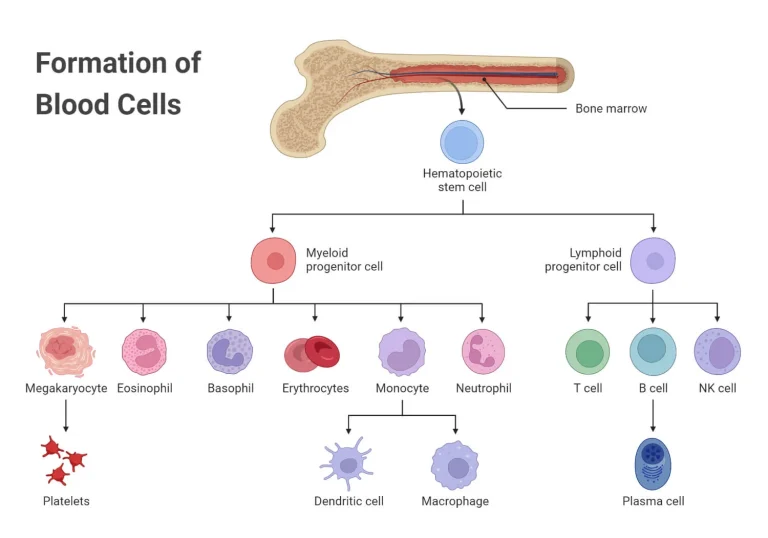 Formation of blood cells (erythrocytes, leukocytes, platelets) in the bone marrow